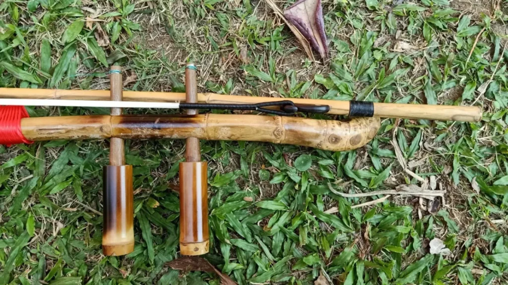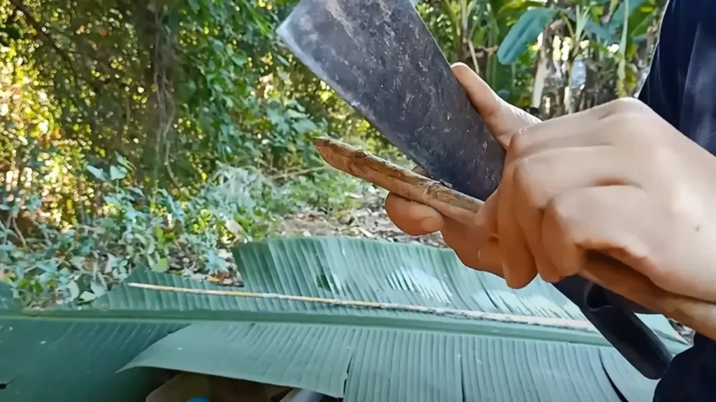 เก็บรายละเอียดบริเวณตาไม้ทุกข้อปล้อง ซึ่งคันชักนี้จะใช้ความยาวประมาณ 80 เซนติเมตร นำไปอังไฟแล้วค่อย ๆ ดัดให้มีความโค้งงอ ซึ่งอุปกรณ์ช่วยดัดก็เป็นเพียงแค่ลำไผ่ธรรมดา ๆ 2 ท่อน