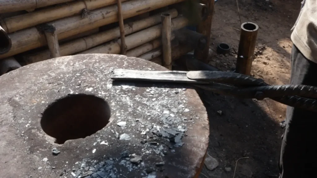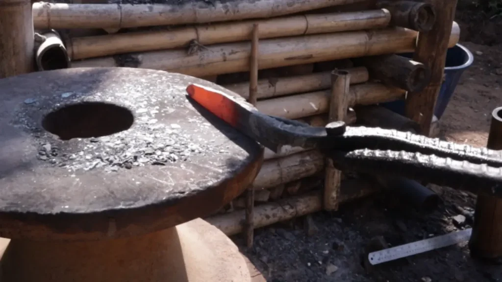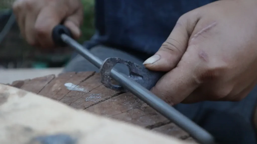 5.เหล็กตันท่อนนี้ จะนำมาตีให้ด้ามโค้งเพื่อรองรับกับมือของผู้ใช้งาน ช่วยให้กำมีดได้ถนัดมือ