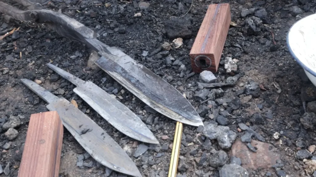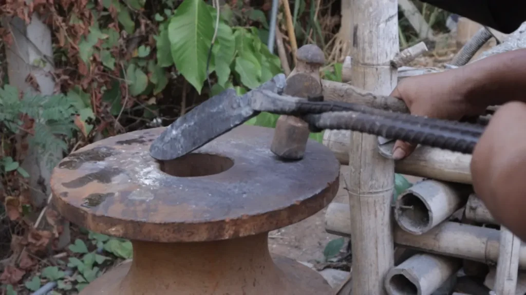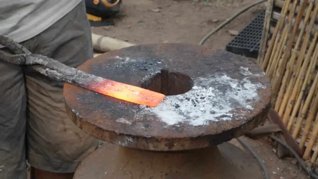 ในการเตรียมเหล็กก่อนตีมีด พี่ช่างจะเผา 2 รอบ รอบแรกผาให้เหล็กกแดงก่ำแล้วปิดลม ทิ้งเหล็กไว้ในเตา ประมาณ 10 นาที จากนั้นจึงค่อยเร่งไฟในรอบที่ 2