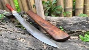 - มีดควาญช้างตอกอักขระ ด้ามรากแก้วไม้พะยูง